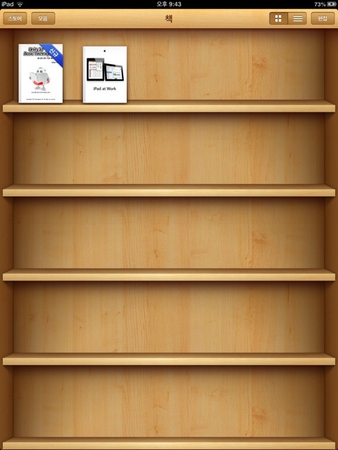 동기화가 끝난 뒤 아이패드를 열어 아이북스를 실행하면 아래 그림과 같이 <유니티 4 기초 테크닉 80>을 발견하실 수 있습니다.